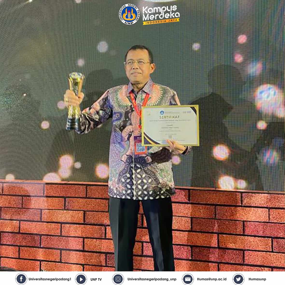 KLIKPOSITIF – Rektor Universitas Negeri Padang (UNP) Prof. Ganefri, Ph.D meraih Anugerah Academic Leader dari Kemendikbud RI sebagai Rektor terbaik se Indonesia untuk Kategori Perguruan terakreditasi Unggul, Senin 13 November 2023. Penghargaan diserahkan oleh Dirjen Dikti Ristek Prof. Ir. Nizam, Ph.D di salah satu hotel di Denpasar Bali. Hadir dalam kesempatan itu yang mendampingi WR […]